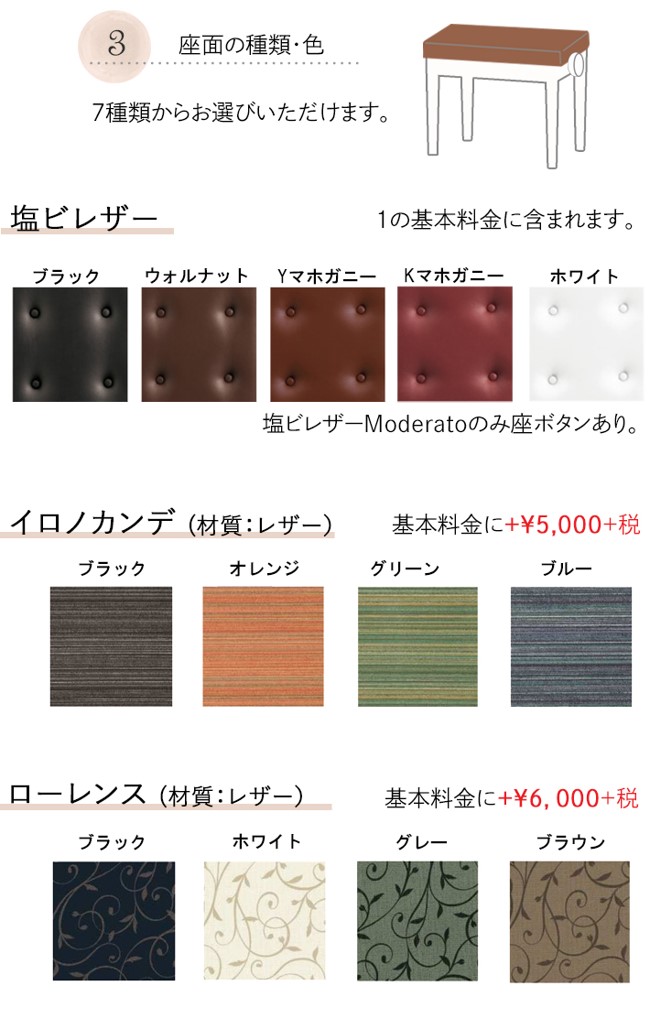 ■吉澤セミオーダーピアノ椅子はリニューアルし、座面の種類が増えました!