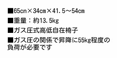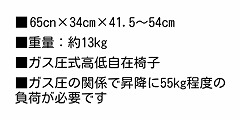 | 高さ調整方法 | ガス圧式(注意:昇降に55Kg以上の負荷が必要です) |