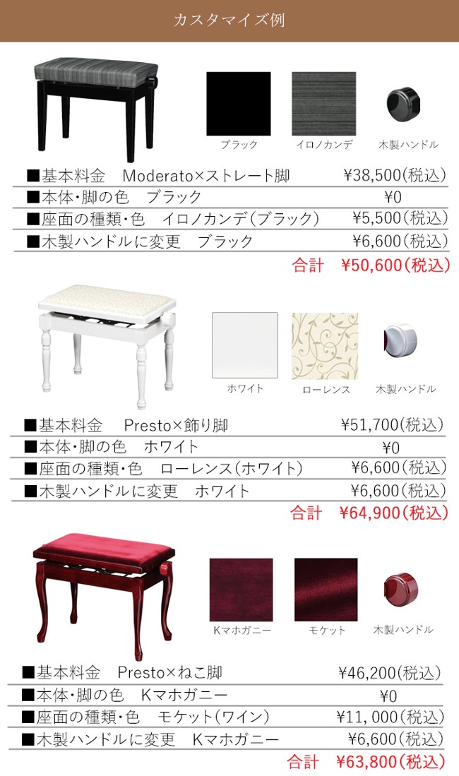 自分好みにカスタマイズ!セミオーダーピアノ椅子