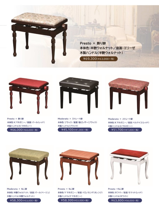 ■吉澤セミオーダーピアノ椅子はリニューアルし、座面の種類が増えました!